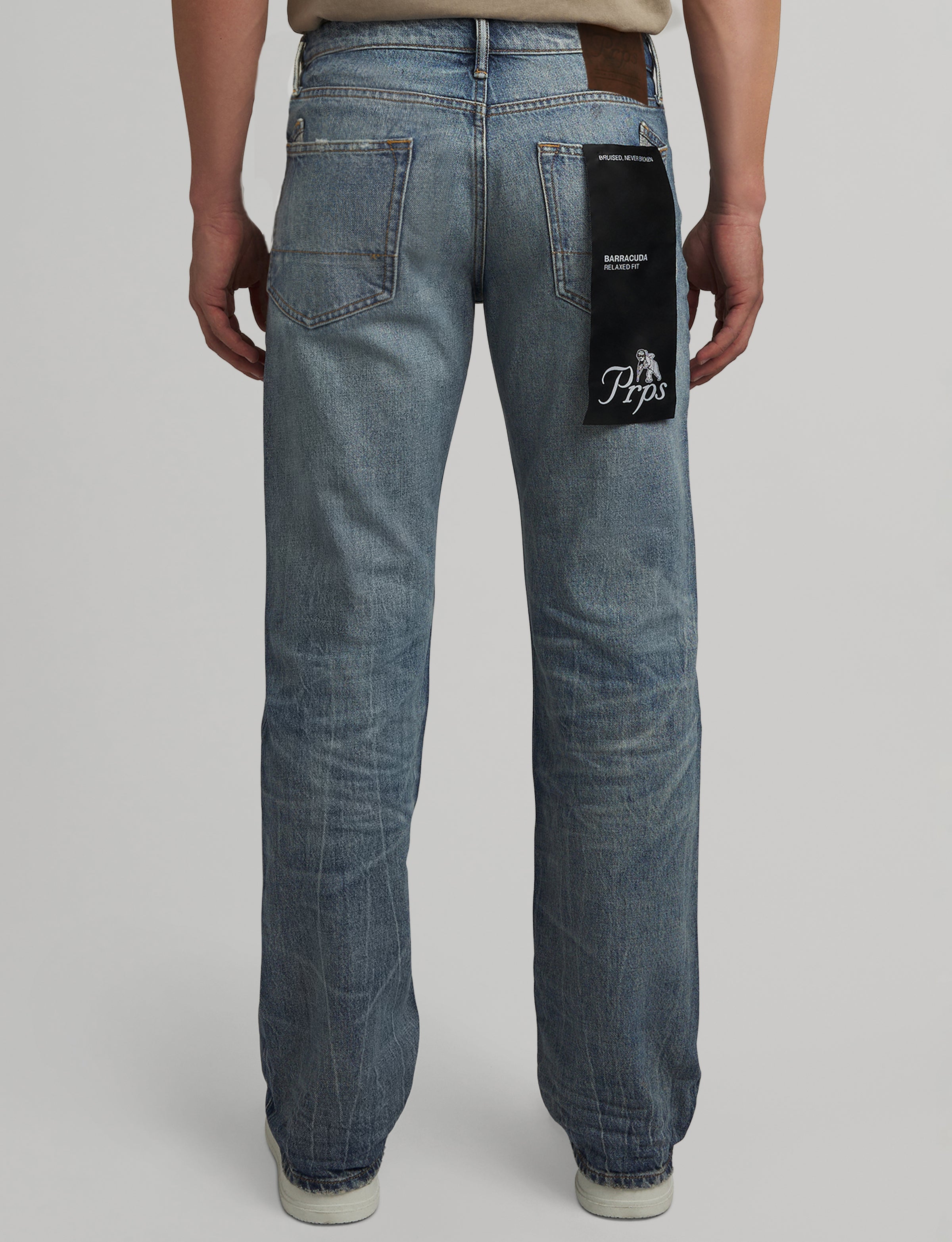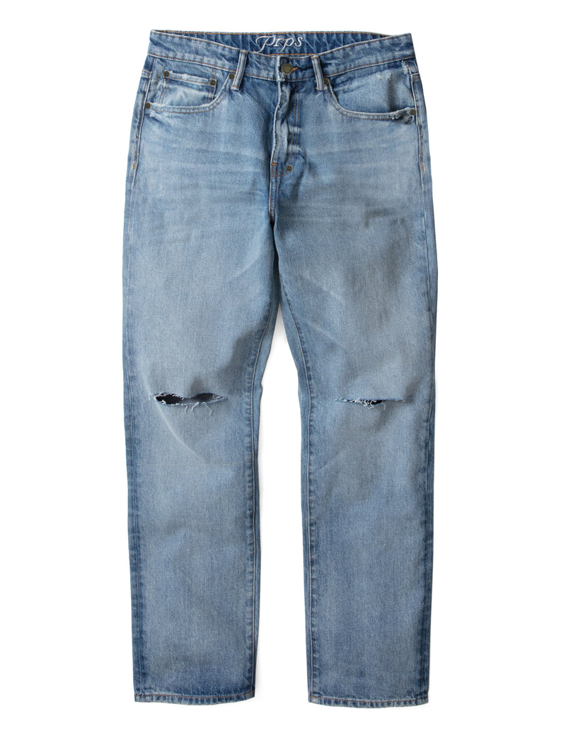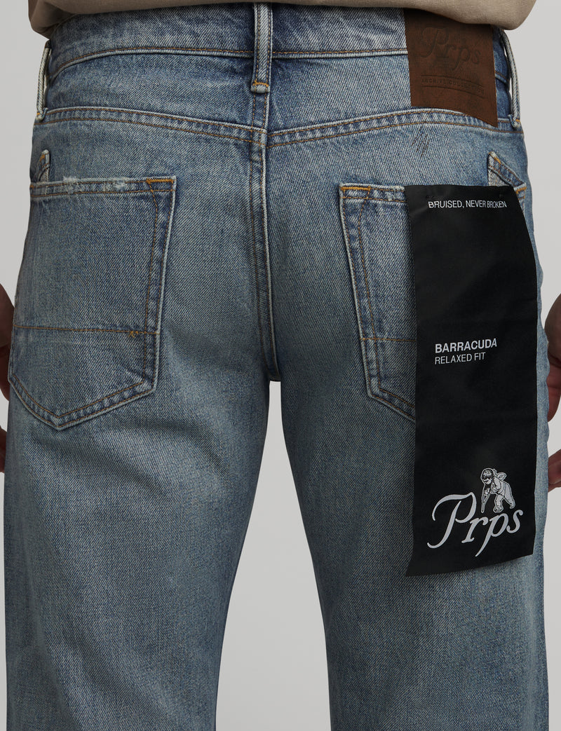 The CBGB Jeans are a PRPS archive jean with a relaxed fit and a distressed rip at the knee.