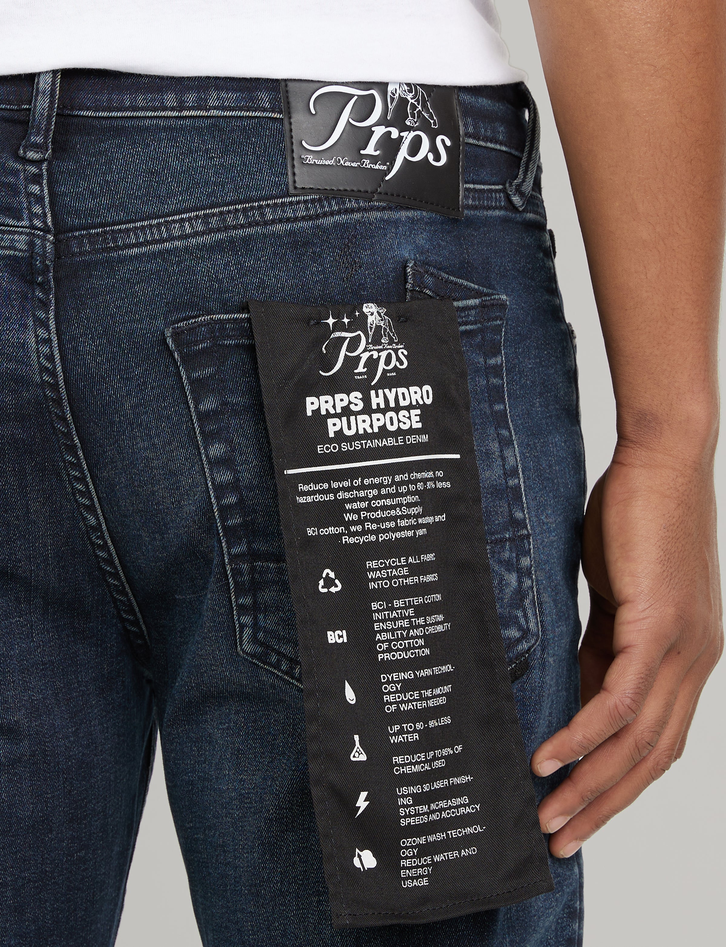 The Wellbeing Jeans have a classic dark wash in a narrow, tapered fit. Part of our Hydro PRPS line, these men's jeans are low impact on the environment and feature a vegan leather back patch.Fit & Sizing: