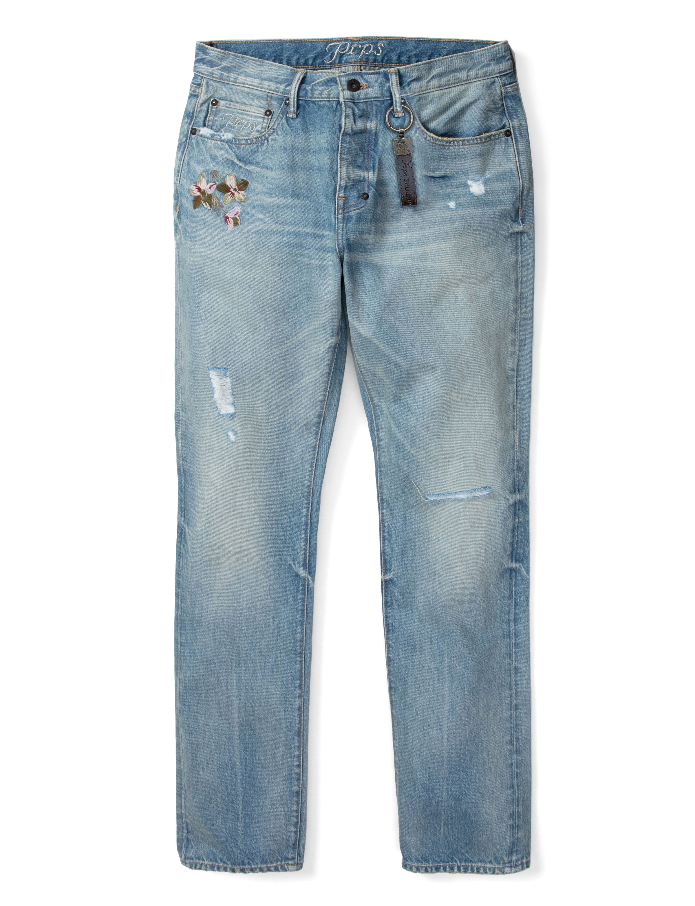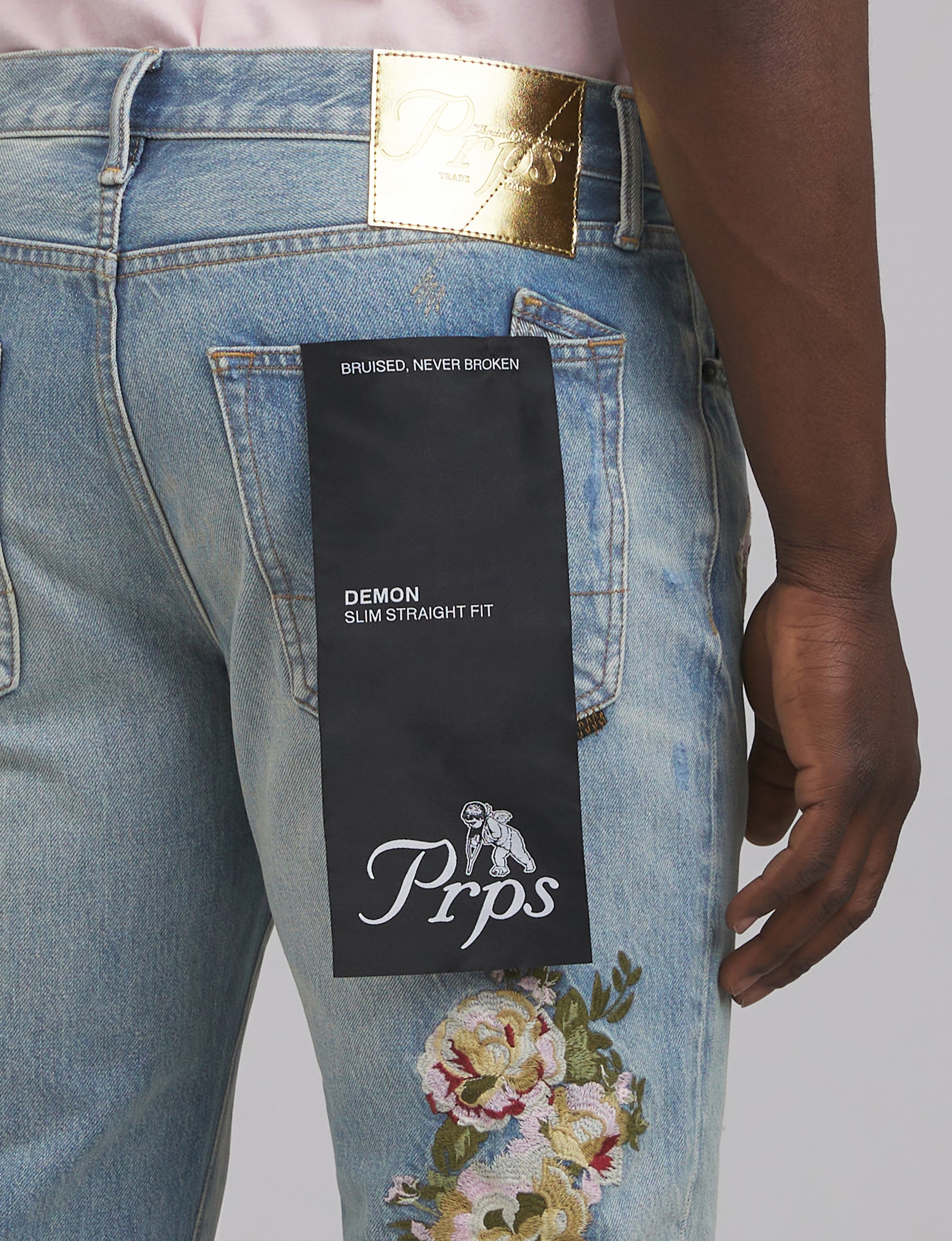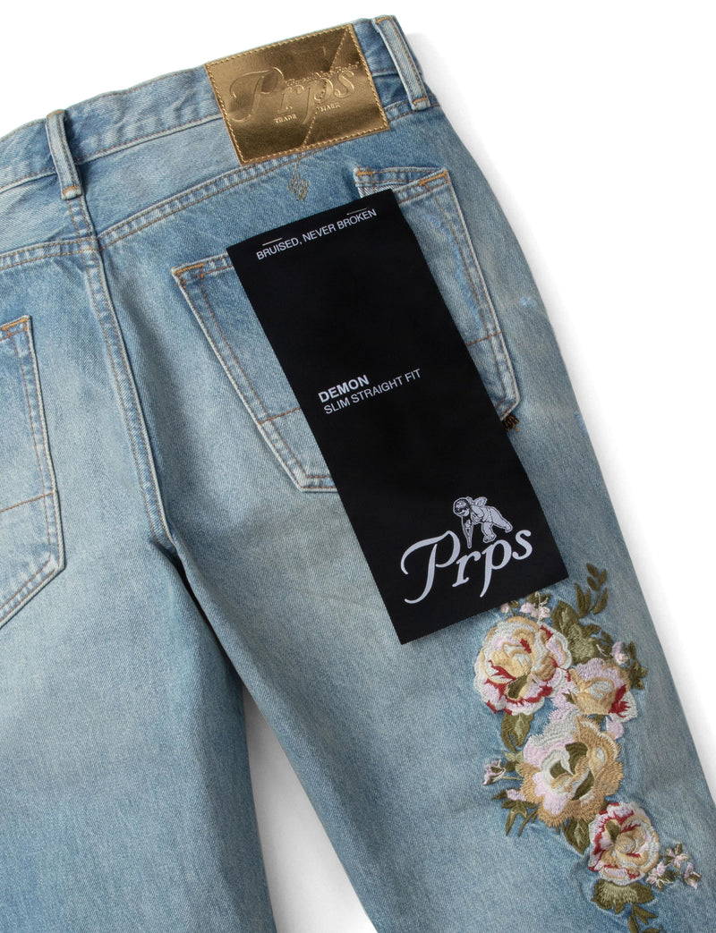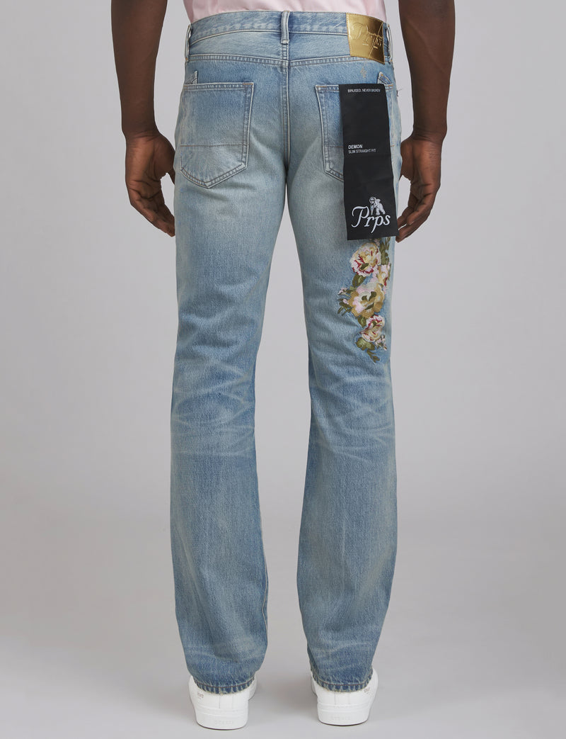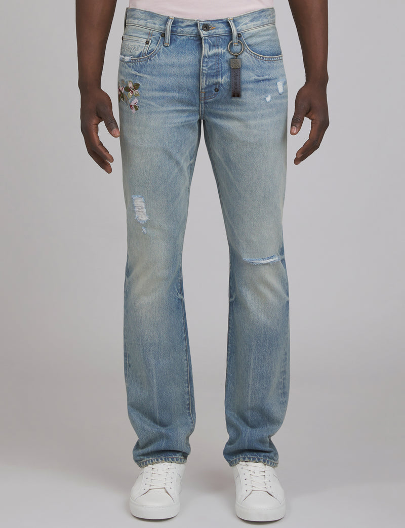 Our Peony Pant is a straight-leg jean with unique floral embroidery. Pair with the matching Peony Jacket for a coordinating look.