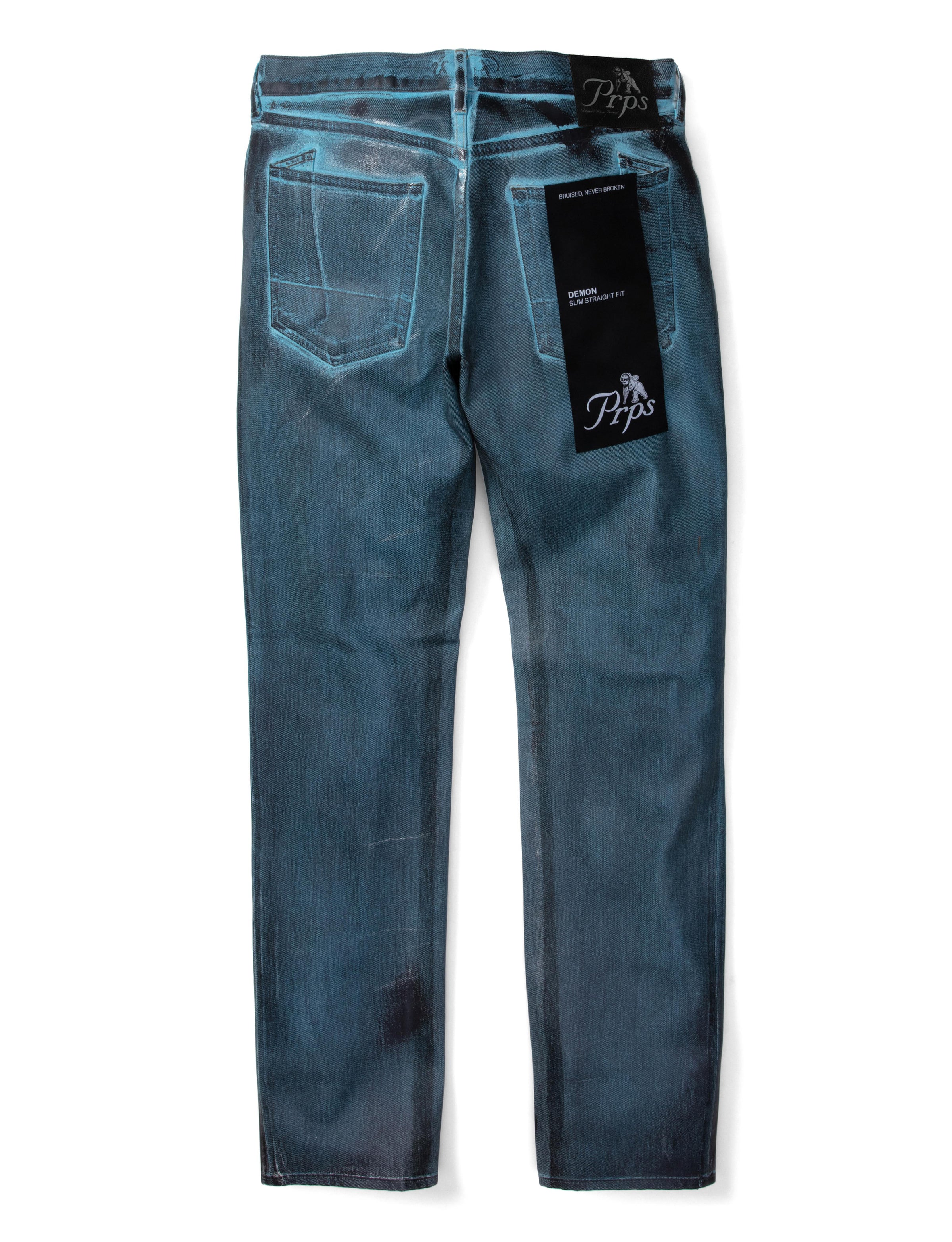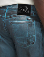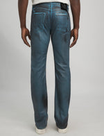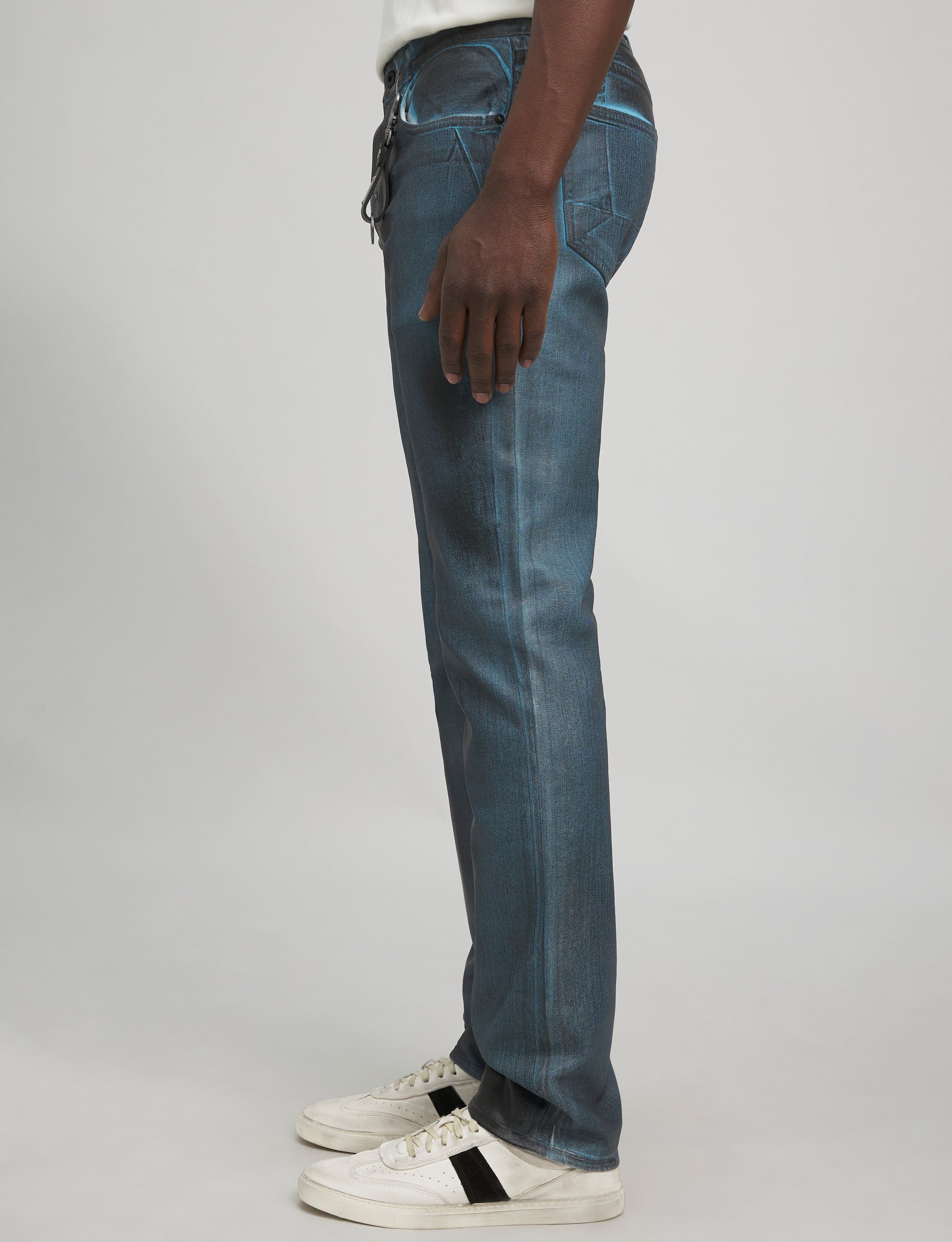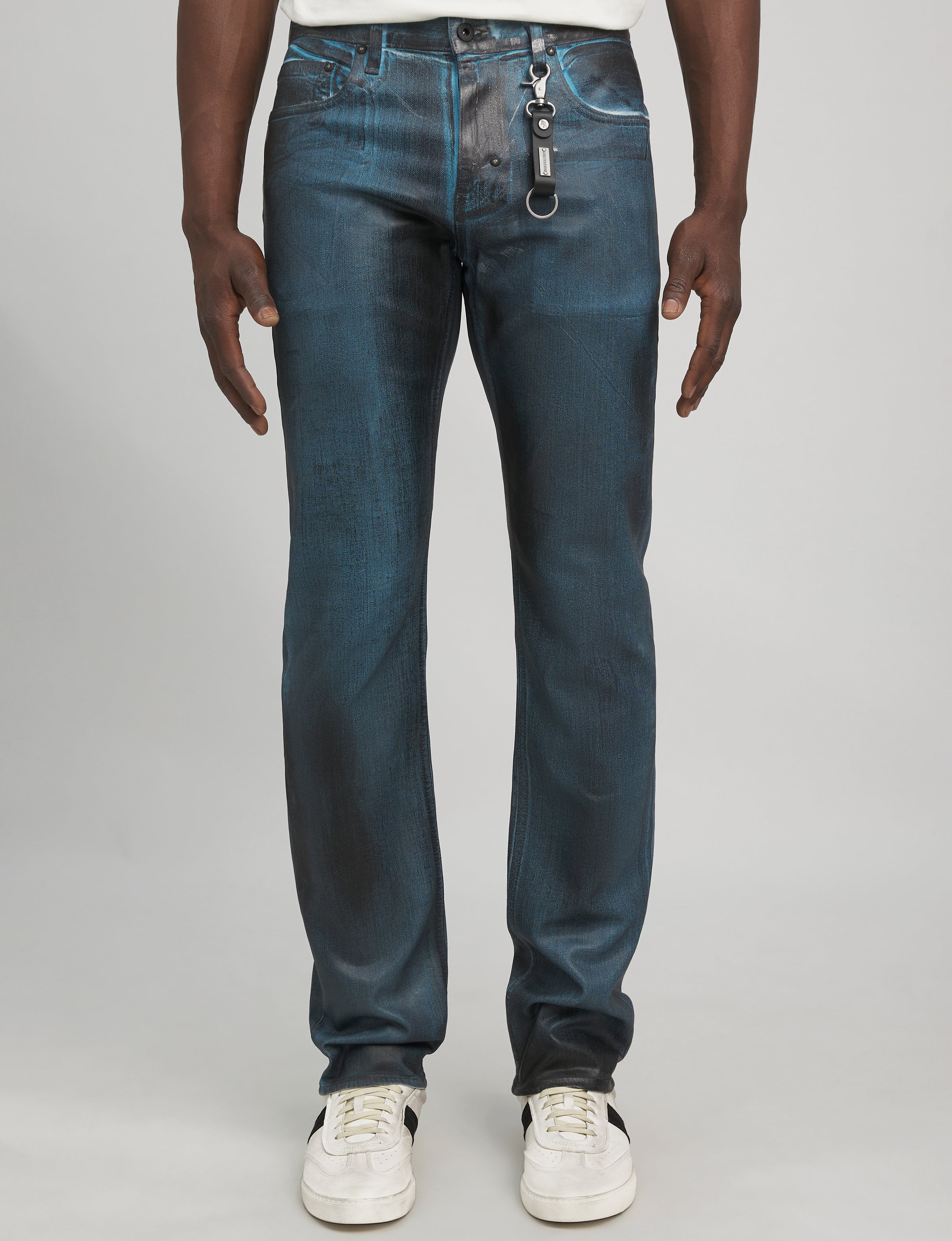 Coated denim made in the USA. The Wisteria Pant features a straight fit and a color-coated finish.
