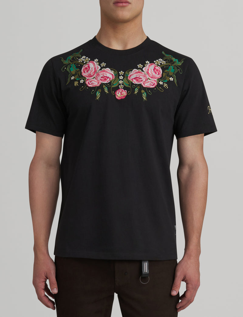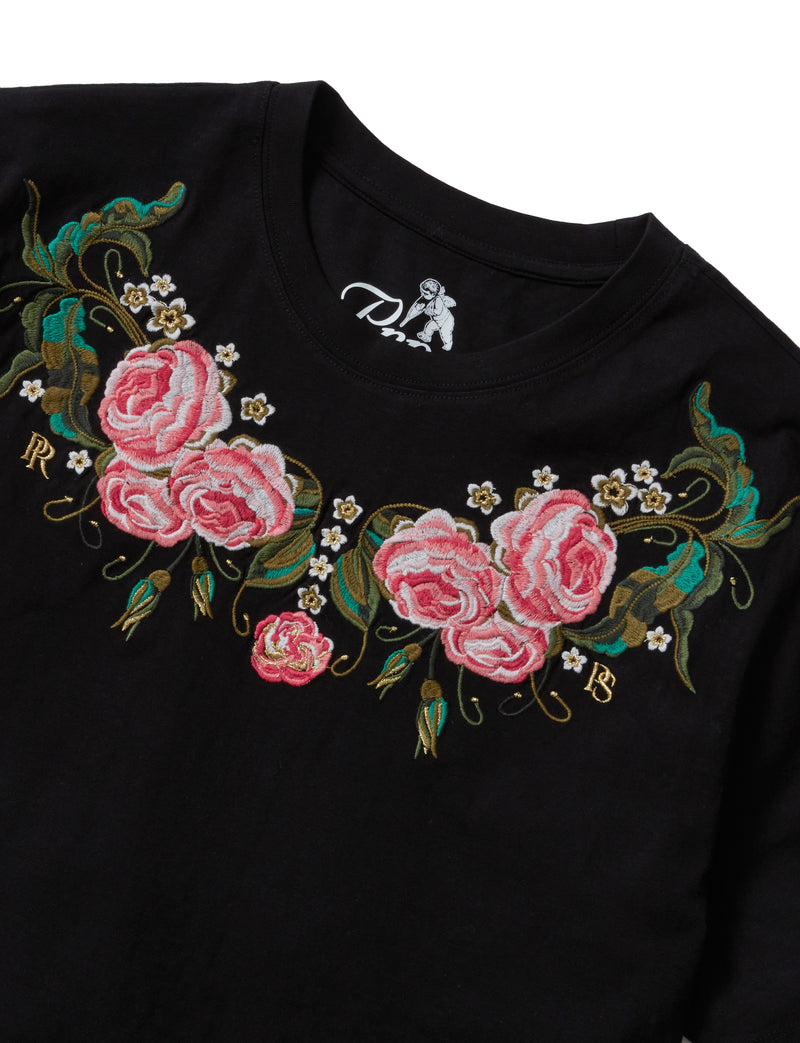 The Dream House Tee is crafted in a softener wash with floral embroidered details for a unique feel.